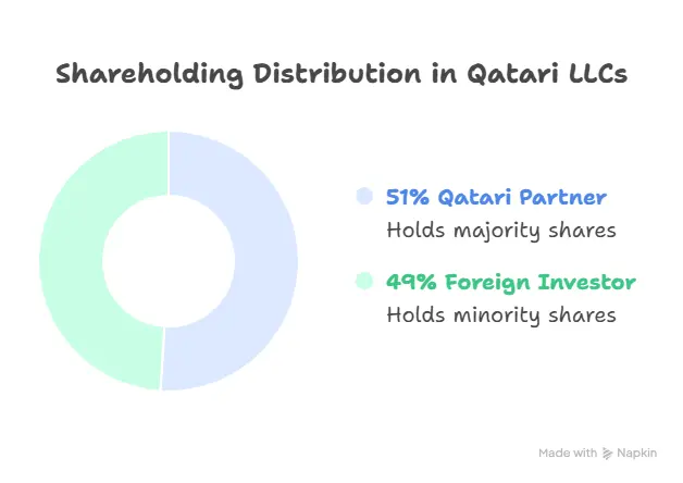 Qatar’s commercial law requires 51 percent Qatari ownership for most LLC structures, so the sponsor becomes part of the legal framework.